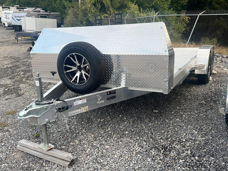 7000 LB GVW, Double Hollow Aluminum Tube Tongue, Frame Outer Rails & Frame Front Crossmember, 2'' x 2'' Top Deck Rail, 2'' x 2'' Top Deck Rail Uprights, Side Rub Rail Consisting of 2'' x 4'' x 4'' Stake Pockets & 3'' x 1/4'' Bar Stock Aluminum, 6'' Extruded Interlocking Aluminum Decking, 7' Heavy Duty Loading Ramps ??? Side or Front Access, 2' Beaver Tail, LED Lights, 15'' Aluminum Wheels, 3500 LB Capacity Axles, 15'' Radial Tires, 7000 LB Capacity Zinc Plated Coupler, 7600 LB Capacity, 30'' Zinc Plated Safety Chains, 2500 LB capacity Zinc Plated Pad Jack, 7-Way Round Wiring Harness, 2 5/16 Ball, 10'' Electric Brakes On Both Axles, 14'' Hitch Height, 18'' Deck Height, 7'' Rail Height Above the Deck, Aluminun Front Rock Guard, Matching Aluminum Spare Wheel and tire, and Power Tonuge Jack